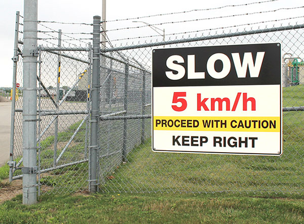 Many of the required signs were oversized and demanded custom cutting to meet safety and visibility standards. The six-week timeline was tight, and because the facility operates 24 hours a day, nighttime visibility was essential. INPS was responsible for the complete installation of all signage at the Aylmer location.